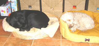 You were so right about Potter - he is absolutely adorable. He has slept well both nights and no accidents. He is laying at my feet as I type with his head resting on top of them. He hasn't barked once - god bless him. I took him out for a long walk this morning and did some light training with him whilst out. He met another couple of lovely agility dogs and the lady has invited me around to her house to bring potter to continue the fun socialising he had with her dogs. She also mentioned that she thought I might like to try agility classes with him (for beginners of course) which also includes basic obedience. So next Thursday, thats where we are off! Potter adores his new bed and I left him hesitantly for the first time today to do 2.5 hours work and came back to find him outside flat out on his back in his bed. He didn't jump on me when I arrived home, and having watched the Jan Fennel DVD, I ignored him for a few minutes before giving him a big hug.